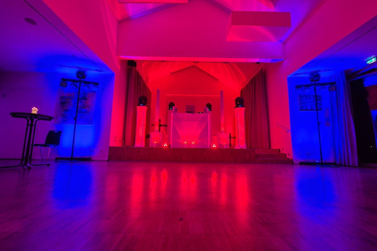 Ich arbeite mit professionellem Equipment, das für einen klaren Sound und beeindruckende Lichteffekte sorgt. Alles wird optimal auf eure Location abgestimmt, um die bestmögliche Atmosphäre zu schaffen.